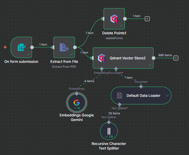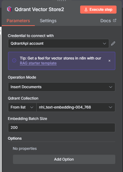 • 成功將 n8n 與本地的 Qdrant 資料庫串接,並完成資料寫入。