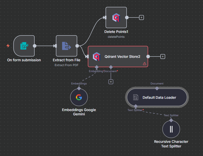 1. 再次於 "Extract from File" 節點後新增 "Qdrant Vector Store" 節點。