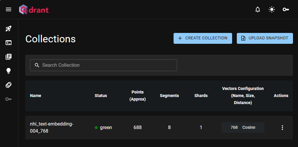 圖 7: 在 Qdrant 儀表板確認資料點已成功寫入。